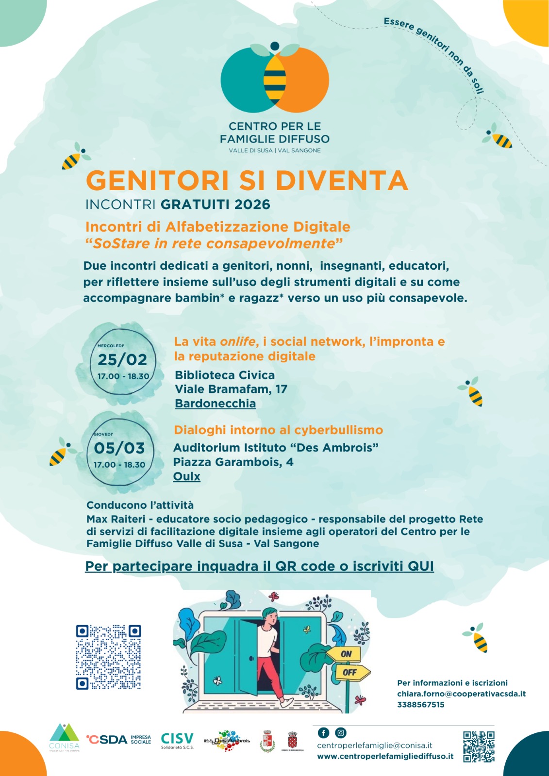 Il Centro per le Famiglie Diffuso del Conisa Valle Susa - Val Sangone promuove un ciclo di incontri a favore della genitorialità.