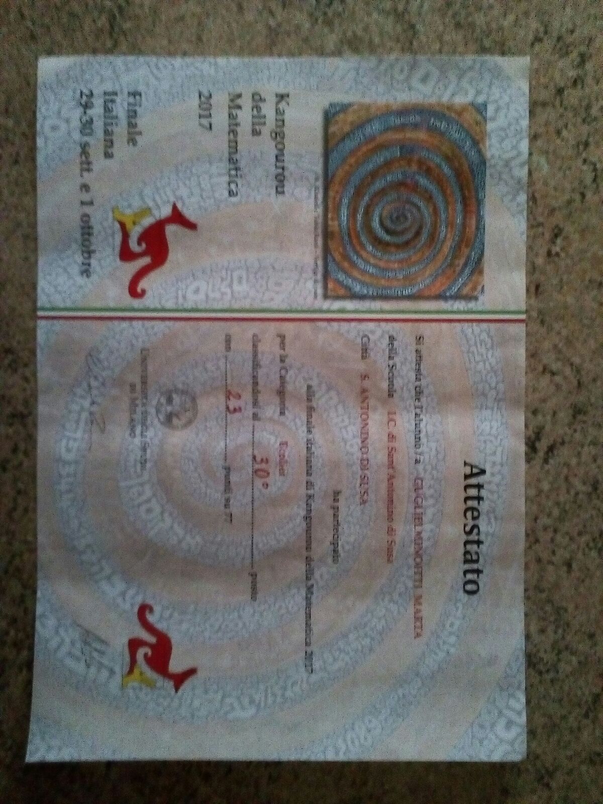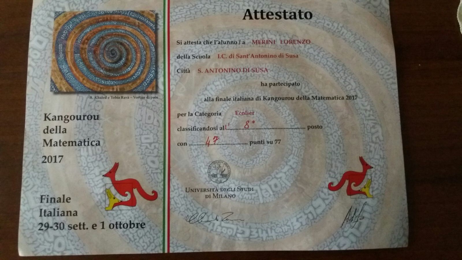 Anche quest’anno ben due allievi del nostro Istituto si sono qualificati, per la categoria Ecolier, alla finale nazionale delle gare Kangourou della Matematica che si è svolta a Cervia dal 29 settembre al 1° ottobre 2017: si tratta di Marta Guglielminotti e Lorenzo Merini, oggi frequentanti rispettivamente la 1B e la 1A della secondaria di Sant’Antonino. Per arrivare a Cervia, hanno dovuto superare due importanti fasi di selezione lo scorso anno: la fase individuale il 16 marzo , dove si sono confrontati con 13.924 studenti di tutta Italia arrivando ben al primo (Lorenzo) e al secondo posto (Marta)! Successivamente hanno affrontato la semifinale il 27 maggio a Torino classificandosi ancora ottimamente (quinta Marta e sesto Lorenzo su 1257 concorrenti) e guadagnandosi il viaggio per la finale, che, oltre la sfida della competizione, prevedeva, quale meritatissimo premio per le fatiche della gara, l’accesso al parco divertimenti di Mirabilandia.