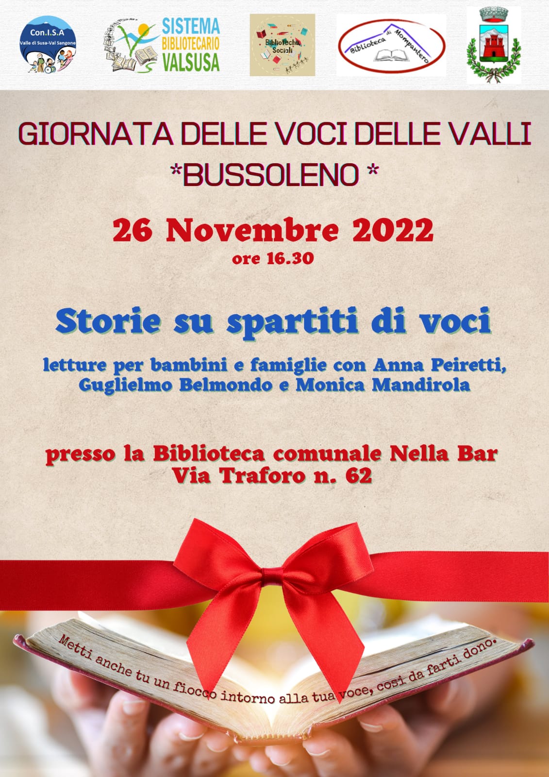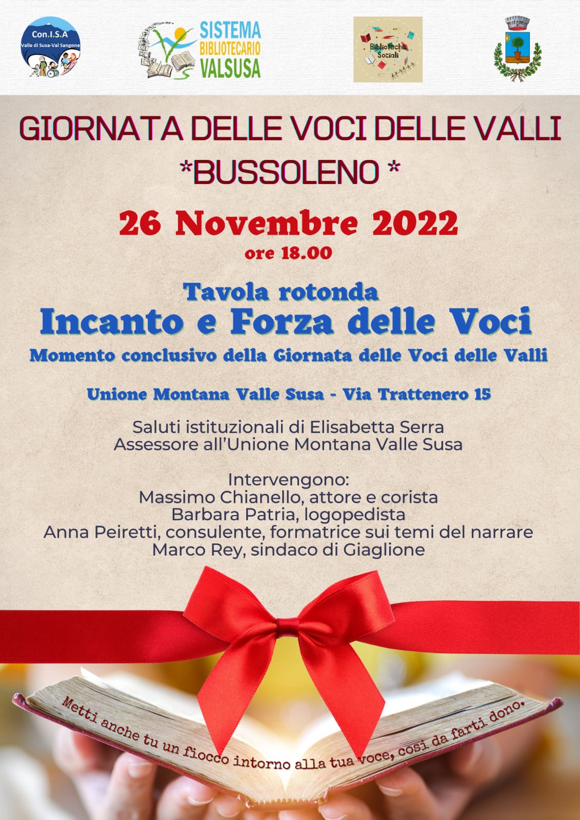 Info aggiornate in tempo reale sulla pagina Facebook del Registro delle Voci e sul sito del Sistema Bibliotecario Valsusa