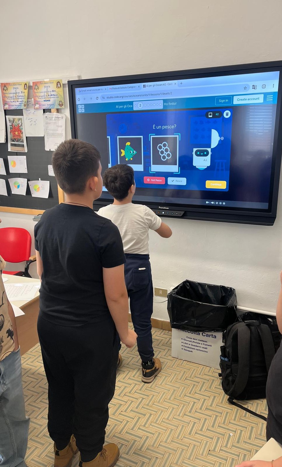 Nell'ambito del progetto, le classi 5A e 4B hanno intrapreso il percorso di alfabetizzazione sull’Intelligenza Artificiale con il prezioso supporto del formatore dell’Equipe Formativa Territoriale, Andrea Goia. I ragazzi hanno svolto una prima attività unplugged sul meccanismo del riconoscimento/addestramento che adoperano le macchine, e successivamente hanno eseguito un’attività su Code.org per vedere concretamente come la raccolta di dati permetta alla macchina di imparare a riconoscere determinati oggetti. A conclusione il prof. Goia ha spiegato ai ragazzi anche i pericoli che si possono celare nell’uso/abuso dell’AI e dei rischi per il pianeta in termini di inquinamento, così come i rischi per lo sviluppo cognitivo, poichè affidando ogni dubbio o richiesta alla macchina sin da giovanissimi si rischia di non sviluppare a pieno le proprie capacità di pensiero logico e critico.Sono previsti altri due incontri in cui si affronteranno i temi di: “Mentalità centrata sull'uomo: facciamo la domanda giusta” e “Tecniche e applicazioni dell’IA”.