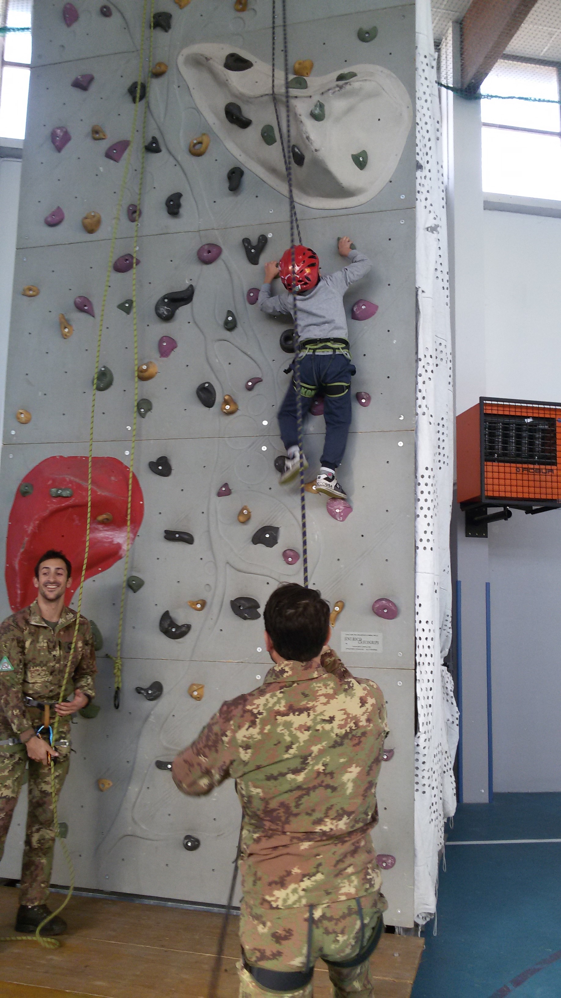 Gli alunni, dopo aver osservato con attenzione quanto da loro spiegato, hanno assistito ai tentativi dei bimbi della primaria di arrampicare su una parete rocciosa, montata per l’occasione dagli Alpini della Taurinense che hanno badato anche che l’attività si svolgesse in totale sicurezza e poi si sono recati all’esterno per provvedere all’addobbo degli alberi precedentemente prescelti con gli oggetti elaborati in classe dietro la supervisione della collega di arte, Maria Grazia Bombaci.